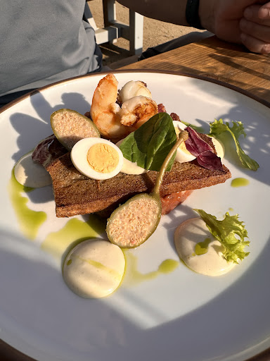 Wir waren an einem sehr heißen Tag (35 °C) zum Abendessen dort. Die Speisen waren qualitativ gut, preislich im gehobenen Segment (jeweils rund 28–30 €). Leider wurde der Abend durch den enttäuschenden Service völlig überschattet.