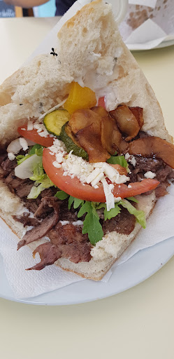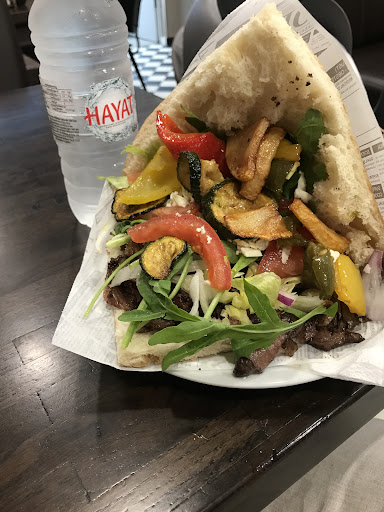 Read moreDas beste an diesem Döner ist, dass dieser total innovativ und neu ist. Mit innovativ meine ich, dass es diesen Döner so nicht überall geben wird und geschmacklich sehr einmalig ist. Beim Fleisch merkt man die extrem gute Qualität (kein Gammelfleisch sondern leckeres und zartes Steakfleisch wie geworben). Allerdings ist es etwas zu fad gewürzt für meinen Geschmack. In dem Döner gibts Ziegenkäse mit drauf. Wird nicht jedem schmecken, da der Ziegenschmack sehr sehr dominant im Döner ist. Mir hats aber gut geschmeckt und ich finde das passt gut. Ofengemüse im Döner ist mal was neues, aber mir fehlt das frische Gemüse mit etwas knack bzw. Biss der das fettige im Döner normalerweise ausgleicht. Da ist zwar Rucola mit drin aber der Döner bleibt dadurch trotzdem sehr ölig im Nachgang. die Knoblauchsauce schmeckt mir persönlich leider gar nicht :-(. Der Döner könnte auch mehr Sauce vertragen denn nach dem 2-3 Bissen wird der Döner etwas zu trocken. das Beste an dem Döner ist definitiv das überragende selbstgebackene, knusprige Brot mit Sesam und Dill.