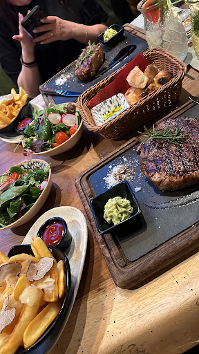 Hauptgericht: Die Steaks waren perfekt auf den gewünschten Gargrad zubereitet. Die Fleischqualität war herausragend. Dazu gab es Trüffel-Parmesan-Pommes, die ebenfalls sehr gut geschmeckt haben. Zu jedem Steak wurde ein frischer Beilagensalat serviert. Wer Steak liebt, ist hier bestens aufgehoben. Absolute Empfehlung!