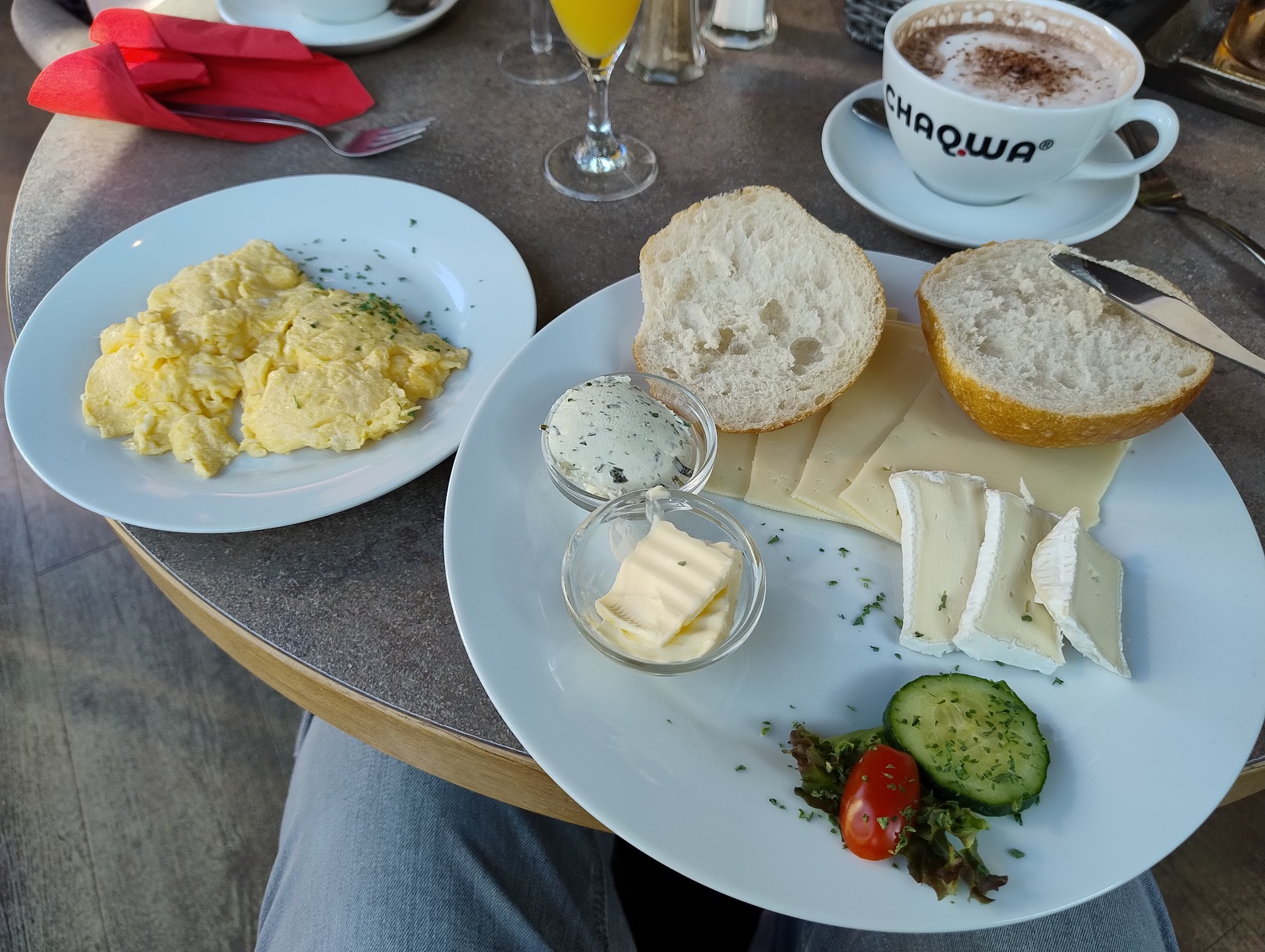 Das Highlight jedoch ist der Service und natürlich die gebotenen Speisen. Jeder Kunde wurde sehr herzlich begrüßt und in Empfang genommen. Ein wirklich großartiger Service und ein schönes Miteinander in diesem Café. Unser Sachsenhäusener Frühstück (unseres als vegetarische Variante) wurde schnell serviert und hat fantastisch geschmeckt. Es gibt neben den vorgeschlagenen Frühstücksmenüs auch die Möglichkeit sein Frühstück selbst zu kreieren bzw nach Belieben zusammen zustellen, ganz wie Zuhause, jedoch mit dem Service, dass es an den Tisch gebracht wird. Unser einziger verbliebener Wunsch wäre eine Online Speisekarte, vielleicht haben wir diese aber auch nur übersehen.