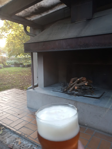Read moreDas Restaurant liegt etwas versteckt hinter einem (eigenen) Parkplatz und einer Schranke im Grünen. Umgeben von einer große Rasenfläche mit Bäumen, Büschen und Blumen fühlt man sich fast wie in einem Hotel. Im Außenbereich stehen gepolsterte Liegen bereit, auf der Terrasse hat man die Wahl zwischen gepolsterten Stühlen mit Lehne, Sitzbänken, kleinen Tischen und großen Tafeln. Es gibt sogar einen Außenkamin. Drinnen wirkte es etwas schummrig wegen des dunklen Holz überall, aber gemütlich. Man sitzt entweder an offenen Tischen oder in einem der abgetrennten Bereiche. Innenkamin: ebenfalls vorhanden. Die Fenster Richtung Rückseite zeigen in die Reithalle.