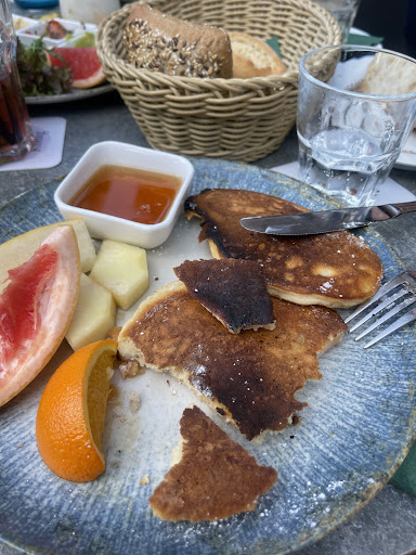 Essen: Wir wollten nur kurz Kaffee und Kuchen essen, daher kann ich über den Rest nichts sagen. Die Bilder in der Bewertung sehen was das Essen betrifft, egal ob morgens oder abends, sehr gut aus. Meine Bewertung bezieht sich lediglich auf den nachmittaglichen Kuchensnack. Der Käsekuchen hat uns leider nur mittelmäßig bis eher schlecht geschmeckt. Er erinnerte sehr stark an Fertigkuchen oder ähnliches, aber er war weder fluffig noch hatte er einen angenehmen Geschmack. Vielleicht lag er im Kühlschrank zu nah an anderen Lebensmitteln die geschmacklich nicht in Einklang zu bringen sind. Der Karottenkuchen hingegen war in Ordnung, wenn auch etwas zu viel Zucker für meinen Geschmack. Die Portionsgröße war angemessen. Der Kaffee war auch gut. Der Ingwertee leider gar nicht. Nun fragt man sich, was gibt es dort auszusetzen , da es dort ja eigentlich nicht viel falsch zu machen gibt. Zum einen kenne ich es so, dass, wenn ich Ingwertee irgendwo bestellt have, dieser auch zeitgleich so schmeckt. Dieser war selbst nach 10 Minuten fast geschmacksfrei und erst nach und nach wurde langsam der Geschmack entfaltet. Die erste halbe Tasse habe ich also eigentlich nur heißes Wasser getrunken, denn Ingwertee braucht meiner Meinung nach sehr viel länger zum Ziehen als herkömmliche Teebeutel. Den vollen Geschmack hatte ich dann ca. 20 min später. Zudem waren die Stücke leider sehr klein geschnitten, so dass der Großteil des Ingwers fusselweise und stückweise in meinem Mund landete. Hier kenne ich es auch so, und erscheint mir auch sinnig, die Stücke längs und größer zu schneiden. Ich schwadroniere so lange über diesen Tee, da ich ihn mit fast 4€ extrem teuer finde für das, was ich dann dafür bekommen habe. So oder so finde ich dies teuer (ohne Minze, Zitrone, Honig, etc.)