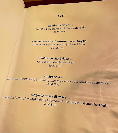Die Karte ist dagegen (auch im Vergleich zu „bei Mario“) eine Enttäuschung: Es gibt beispielsweise insgesamt nur 7 Gerichte in der Königsdisziplin „Pasta“. Das ist zu wenig, wenn man nicht noch mit einer Tages- oder Wochenkarte nachlegt (gab es bei meinem Besuch nicht). Pizza wurde aufgewertet, das zeigt auch die Anschaffung des neuen Pizza-Ofens, die Auswahl an Fleisch- und Fischgerichten ist gut, aber nicht wirklich „italienisch“ und erinnert stark an das Aresto. Warum man sich mit der Karte nicht deutlicher vom Schwester- und Nachbarrestaurant absetzt, verstehe ich nicht. Eine vertane Chance auf Vielfalt für die Besucher. Das zeigt auch die Getränkeauswahl: Kaum italienische Weine, 50% (gute) Deutsche Weine auf der Speisekarte. Da hat man bei Weißwein die Auswahl zwischen einem Pinot Grigio oder Fascati, das ist definitiv zu wenig. Es gibt exakt einen Roséwein, bei dem nicht einmal die Traubeart steht (Der Kellner wusste es auch nicht). Als Wasser gibt es „Staatlich Fachingen“. Gut, es muss ja nicht immer „Pellegrino“ sein (schon wegen Nestle), aber etwas mehr Italienliebe/Nähe würde ich mir doch wünschen. Das gilt leider auch bedingt für die Küche: Ist der Koch wirklich Italiener? Die Gerichte wirken lieblos gemacht (z.B. Lasagne) und beliebig abgeschmeckt. Lobend erwähnen kann man noch, dass die Preise nach dem Umbau nicht wesentlich gestiegen sind. Noch passen das gehobene Ambiente und Karte/ Küche nicht...