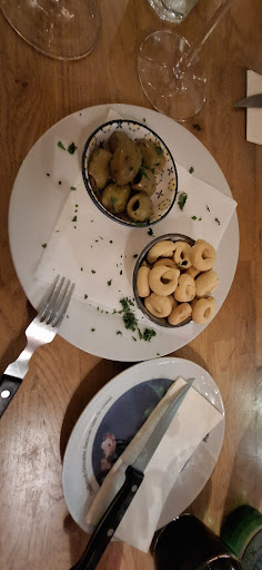 Read moreSpontane, aber richtig gute Entscheidung, in diese Pizzeria zu gehen. Wir waren in der Nachbarschaft in einem Hotel untergebracht und hatten noch Hunger. Wir wurden sehr freundlich empfangen. Die Einrichtung ist etwas rustikal, die Dekoration beschränkte sich auf Weinflaschen und Weinflaschen, aber es war alles irgendwie stimmig und gemütlich. Nach einer kurzen Wartezeit haben wir unsere Vorspeisen und danach unsere Hauptgerichte bekommen und wir können nicht meckern ( das hätten wir sonst auch schon im Restaurant gemacht!) Sehr sehr leckere Gerichte, die Pizza war gut gewürzt ( ich liebe Oregano), das Bruschetta war sehr knackig, zu den leckeren Oliven und diese herzhaften Keksen könnte man noch einen Dip oder gutes Öl servieren. War aber so auch schon sehr schmackhaft, genau wie die schwarzen Nudeln. Wir sind zufrieden und satt aus der Pizzeria gegangen und können das Antonella Pizza Manufaktur & Trattoria beruhigt weiterempfehlen. Vielen...