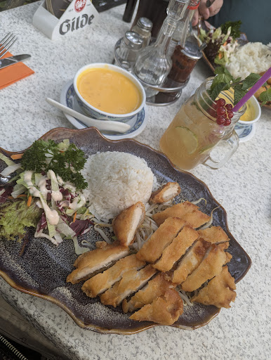 Read moreUnsere Entdeckung auf der letzten Radtour! Wir kamen vorbei und sahen den einladenden Garten. Bei unserem eigentlichen Ziel war die Küche geschlossen (Samstag 16 Uhr), also haben wir hier gefragt und wurden herzlich willkommen. Das Essen hat uns dann sehr positiv überrascht. Als Vorspeise hatten wir Sommerrollen, die wir so noch nicht kannten und die mit den fettigen Frühlingsrollen anderer asiatischer Restaurants nichts gemeinsam haben. Sicher viel gesünder und super lecker. Die Hauptgerichte waren ebenfalls anders als gewohnt, anscheinend aus sehr frischen Zutaten. Obwohl es zusammen mit den Vorspeisen dann doch sehr viel war, haben wir es mit viel Genuss aufgegessen. Gerne kommen wir wieder!...
