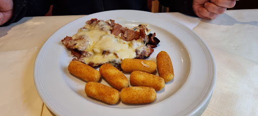 Waren heute mittag dort essen, mh, meine Schwester sagt erst ein Lob und dann Kritik, also nette Kellner die fix sind, essen ging recht schnell obwohl gut besucht. Fangen wir bei den Kellner an obwohl sehr nett sahen sie eher schnuddelig aus war nicht sehr einladend, auch könnte der Laden samt Interieur ne Auffrischung vertragen, gerade der Bereich der wohl mal raucherraum war könnte, gerade was die fehlende Tür betrifft und die Optik ansich, aufgefrischt werden. Wir werden aufgefordert uns am salatbuffet Salat zu holen, mh den namen salatbuffet verdient diese lieblose Ecke nicht, wässriger eisbergsalat n bissi Kraut, rote Beete, dosenmais und Bohnen Ende Gelände. Die Auswahl von paprika, Gurke, Tomate leider nur als Bild an der Wand, nicht schmackhaft eher fad, kein Brot zum Salat und für die Jahreszeit nicht nachvollziehbar. Unser Essen kommt, meine mehr bestellte Soße Fehlanzeige, überbackenes giros, na ja auch ein lieblos angerichteter Teller auf dem ein Haufen Fleisch mit Käse liegt, kenn ich aus anderen Restaurant schon anders, meine jagerpfanne auf den 1.blick ok, aber auf den 2.sehr enttäuschend, Fleisch mit Pilzen und Gemüse mit hollondaise. Der Klecks hollondaise hatte die Größe eines 5mark Stückes, mh naja, der Punkt, über den ich mich so richtig geärgert habe ist der der, Pilze aus der Dose, Erbsen, Möhre, Blumenkohl, Brokkoli alles tk, meine Güte wir haben Sommer, alle diese Gemüse sind frisch zu bekommen, warum tk,im Winter, Herbst ok aber jetzt nicht nachvollziehbar. Essen war ok nix was einem vom hocker haut auch nicht bei den Preisen. Mein Fazit für mich nicht noch mal, danke nein aber nein danke. Wer nix erwartet ist hier nicht...