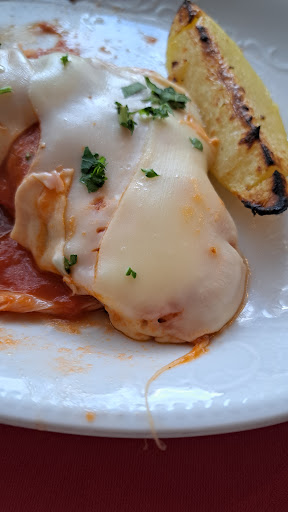Zunächst einmal das Essen. Als ich auf der Karte gelesen habe, dass in der Carbonara Sahne drin ist, wusste ich, dass ich lieber nichts "italienisches" bestellen will (Eigelb, Pecorino, Parmegiano, Guanciale und Pfeffer ist alles was in Carbonara gehört). Also habe ich mich für die 104, ein Rindersteak in Pilzsoße mit Spinat und Pommes entschieden. Der Salat als Vorspeise war billig und fade. Ganz abgesehen von dem halbkompostierten Stück Gurke. Das Steak wurde so gegart wie ich es mir vorgestellt habe, aber die Pilze in der Soße waren eindeutig Dosenpilze. Genau so wie auf der Pizza am Nebentisch. Das ist schon mal ein No-Go. Die Soße war zu viel und nicht sonderlich überzeugend vom Geschmack. Der Spinat mit Knoblauch und die Pommes waren in Ordnung. Mein Sitznachbar hatte Kalbsmedaillon mit Käse überbacken. Wie am Bild zu erkennen, wurden einfach ein paar Scheibe Käse über das Fleisch gelegt und leicht angeschmolzen. So darf das aussehen wenn man sich um 3 Uhr nachts Toast mit Käse in der Mikrowelle macht, aber nicht in einem Restaurant. Ich kann mir die 4,1 Sterne nur durch eine sehr niedrige Messlatte der Stammkunden erklären. Der Service is in Ordnung. Wir mussten zunächst etwa eine halbe Stunde warten bis wir überhaupt Getränke bestellen konnten, aber das kann ja auch nur Heute so schlimm gewesen sein. Danach wurden wir schnell bedient und auch das Essen ließ nicht auf sich warten. Auf meinen Hinweis mit der Gurke hin, wurde gesagt, man würde in der Küche bescheid sagen, ob das auch passiert ist, weiß ich nicht. Das Ambiente und der Name könnten nicht weiter voneinander entfernt sein. Es wirkt einfach die eine typisch deutsche Kneipe, das Mobiliar wurde vorm Mauerfall gekauft genau so wie das Besteck, ich würde nicht von 70er Jahre sondern eher von 30er Jahre Ambiente reden. Außerdem komm man rein und steht vor einer künstlichen Sitzecke bestehend aus 3 Halbwänden auf Rollen mit halbherzig bepflanzten Balkonkästen. Und im Fernseher in der Ecke läuft irgendein Musikchannel auf dem zwischendurch auch irrelevante Nachrichten aus irgendeinem Kaff laufen und der Mainstream HipHop aus den USA. Anstatt dass man eine Playlist mit italienischer Musik erstellt und die laufen lässt. Also rundum ein Erlebnis, dass ich kein zweites Mal ertragen möchte. Selbst wenn hier mal ein leidenschaftliches Feuer für authentische Küche gebrannt hätte, ist diese Flamme nicht nur erloschen, sondern von einem...