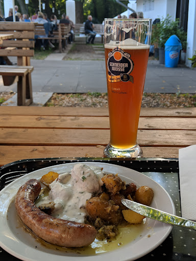Das Essen ist für einen so weit außerhalb der Innenstadt liegenden Biergarten überteuert (4,20 € für die Bratwurst, 4,20 € für die Pommes).