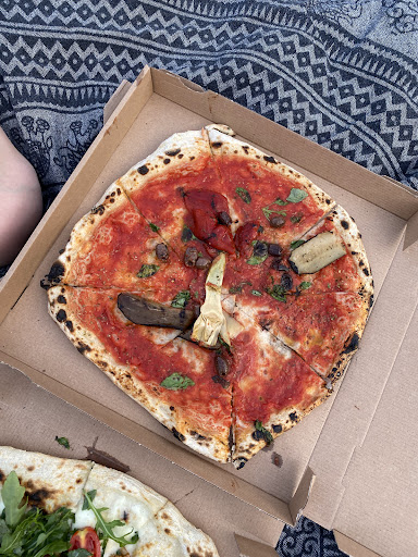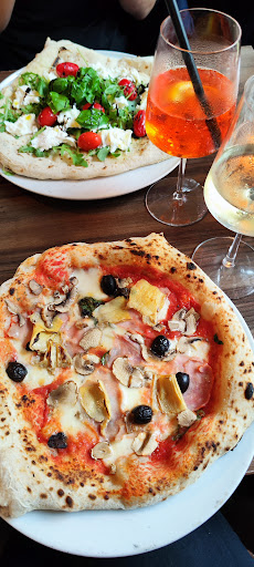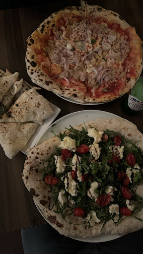 Wir haben am Freitag Abend zu dritt um 20:20 Uhr einen Tischen draußen reserviert. Nachdem wir uns an unseren Tisch gesetzt haben, dauerte es 20 min, bis uns jemand Karten brachte. Wir haben eine Pizza Margherita mit Chili- und Knoblauchöl, eine Pizza Bianca Tartufo und einen Salat bestellt. Ich hätte anstatt der Pizza Margherita gerne eine Salame Pizza gegessen, die Salami war jedoch aus. Zum Trinken gab es für uns 2 Cola und ein Limoncello Spritz. Die eine der beiden Colas war leider warm, da es keine gekühlten mehr gab. Der Limoncello Spritz war sehr wässrig. Wir warteten dann 1 Stunde auf unsere Pizzen und den Salat. Die Terrasse sowie der Innenbereich war komplett gefüllt, wir waren jedoch der letzte Tisch der ankam. Es waren also ca. 95% der bereits belegten Tische mit Getränken und Essen versorgt. Die Pizzen waren grds. sehr lecker, es war jedoch auf der Margherita nicht das extra bestellte Öl drauf. Bei Nachfrage nach separatem Öl, teilte uns die Bedienung mit, dass sie gerade nicht wisse, wo der Koch wäre und deswegen das Öl nicht findet. Der Pizzabäcker saß auf der anderen Straßenseite und rauchte. Als er dann wieder zurück war, kam das Chiliöl hinterher, welches leider eigentlich nach Olivenöl mit einem minimalen pikanten Touch schmeckte. Auch die Pizza Bianca Tartufo entsprach den schon eher teureren Preis von 16€ eher nicht. Der Salat war leider auch sehr nichts-sagend, da lässt sich bei ca. 14€ auch mehr erwarten. Ich frage mich, wieso man einen komplett voll besetzten Laden mit 2 Service-Kräften alleine lässt, welche einen sehr unerfahrenen Eindruck auf uns gemacht haben. Zwischendurch kamen dann scheinbar ein paar Freunde von einer Bedienung vorbei, mit denen Sie dann 3 Schritte neben uns stand und quatschte. Der Laden hat ein tolles Ambiente mit einladender Musik. Die Getränke- sowieso Essensauswahl könnte etwas größer sein.. vielleicht mehr Auswahl an Softdrinks und auch an Salaten. Die Pizza war lecker, jedoch war die Wartezeit definitiv zu lange, und auch die Fehler der nicht mehr vorhandenen Salami sowie unterkühlten Cola sind einfach nicht nötig… Wir hatten uns mehr erhofft und würden nach unserer Erfahrung nicht wieder kommen sondern eher zu unserer alt bekannten Pizzeria des...
