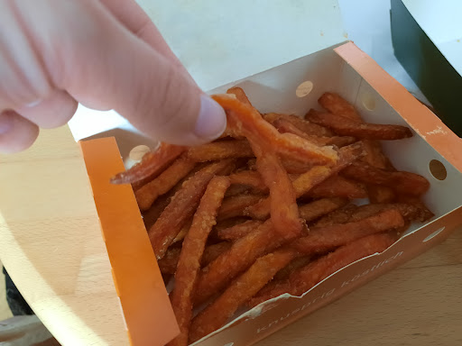 Die beiden Desserts im Glas waren sehr lecker. Dafür ein Stern. Das war es dann leider auch schon mit lecker. Um 17:33Uhr ist der Lieferant vom Restaurant los gefahren und um 18:05Uhr war er bei uns Zuhause. Wir wohnen nur 10 Minuten Fahrt vom Restaurant weg! Unser Essen war gerade noch so lauwarm. Die Süßkartoffelpommes waren komplett weich und labberig und haben zusammen geklebt. Nicht essbar sowas. Der Cheeseburger war ok, bis auf das er nicht heiß war. Chicken Wings waren auch labberig. Kein Wunder wenn man mit dem Essen erst eine Spazierfahrt macht, statt direkt auszuliefern. Mein Crunchy Chicken Burger war wie alles andere auch lauwarm und der Patty nicht Crunchy sondern labberig. Außerdem wurde die Burgersoße vergessen, die ich extra drauf bestellt hatte. Bei der Beschwerde Hotline wurde mir angeboten den Chickenburger noch einmal neu zu liefern. Das ist jetzt eine Stunde her und es ist immer noch keiner wieder hier gewesen. Ich bin verdammt sauer, darüber dass wir für so einen zum Großteil Abfall über 40€ bezahlt haben. NIE WIEDER! Werden wir hier bestellen! Wenn Ihr wissen möchtet wie man leckere Burger macht, dann schaut euch in Hannover die anderen Burgerläden (wie Sams z.b.) an und lernt von denen wie es richtig geht.