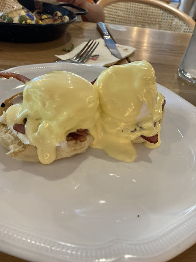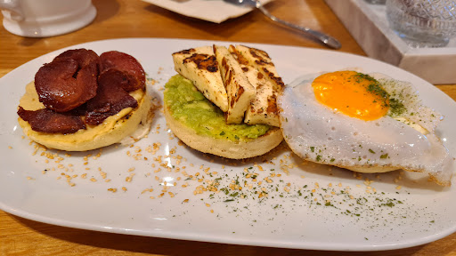Read moreNice café with modern and stylish interior. Staff was very friendly, service quick. It's conveniently located next to a big street and several public transport options. Everything clean and tidy. The food was only partly good though. The topping was fresh and good quality, but the English muffin buns were stale and dry. Egg's Benedict variations and pancakes on the other hand were excellent. It's a very popular place and gets crowded quickly, better reserve ahead...