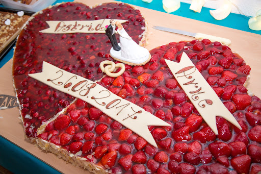 Aber eins nach dem anderen. Wir trafen uns langfristig vorher mit Herrn Peters und besprachen unsere Wünsche. Hier erklärten wir bereits, dass die Torte geschmacklich, wie optisch, „umhauen“ soll. Vollmundig wurde uns von der Möglichkeit eines Airbrush-Systems erzählt, von Fotos, die hochwertig auf essbares Papier gedruckt werden können, und dem Herzstück der Hochzeit, der Torte, einen wertigen Auftritt beschweren.