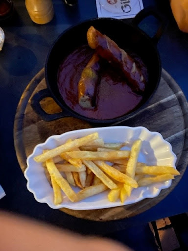 Eigentlich ein tollter Laden, den ich schon einige Male besucht habe. Leider ist vom Flair bis zum Essen und den Preisen, nach Corona einiges auf der Strecke geblieben. Ich habe die auf der Speisekarte super toll klingende Currywurst bestellt: "Exklusive Centrum Bio-Currywurst, hergestellt von der Bio-Landschlachterei Michael Völger, dazu hausgemachte Centrum-Spezial-Currysoße und Pommes 13,90"