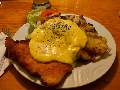 Read moreKann die guten Bewertungen nicht nachvollziehen. Zuerst zum bestellen muss ein Qr Qode gescannt werden. Dieser hat bei uns nicht funktioniert. Bei Nachfrage ob wir eine Karte haben können wurde gesagt, nur auf der Internetseite oder wir gehen raus wo die Karte hängt. Hatten diese dann von der Internetseite raus gesucht. Ich hatte ein Cheeseburger und ein Jägerschnitzel bestellt. Mein Freund ein Putensteak mit Spätzle. Mehr Fertiggericht geht nicht. Das Putensteak war noch ok. Das Burger Patty war kalt. Soße fertig Burger Soße aus dem Supermarkt. Das Brötchen vermittelt auch keine hohe Qualität. Dachte ich mir so, bei dem Schnitzel kann es ja nicht schlechter werden. Leider war dies doch der Fall. Der Geschmack war garnicht ansprechend. Der einzige Vorteil, es war wenigstens durch. Die Bratkartoffeln labbrig, teilweise etwas glibberig. Ein Trost mag die große Portion gewesen sein, ob man das Essen dann aufessen möchte, beleibt jeden selbst überlassen. Zudem ein absolutes NO Go. Die Herren Toiletten. Der Boden war klebrig, dreckiger Film auf den Toiletten. Wer aus dem Local was positives ziehen möchte, I DON‘T KNOW. Evt. Abends ein Beer trinken. Da gibt es aber auch bessere Locations. Hingehen werden wir aber definitiv...