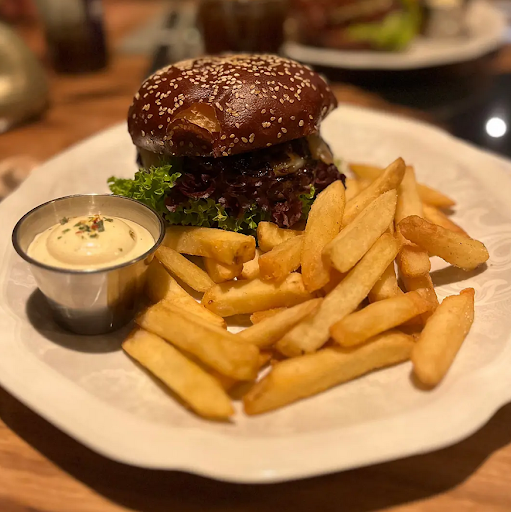 Die Dichterklause in der List überzeugt mit ihrem modernen, rustikalen Ambiente: offene Steinwand, massive Holztische und Teller, die ein wenig nostalgisch an Oma erinnern, sorgen für eine gemütliche Atmosphäre – auch wenn es leider etwas fußkalt war. Die Karte ist ansprechend gestaltet und der Service war top: regelmäßig am Tisch, aufmerksam und kompetent bei Nachfragen. Geschmacklich konnten uns sowohl der Veggie Burger mit Rote-Bete-Kidneybohnen-Patty als auch der Dichter Burger mit 180 g Angus-Patty überzeugen. Der Veggie Burger überraschte mit seiner mediterranen Würze, knusprig angebratenem Patty und der Kombination mit Hirtenkäse. Der Dichter Burger überzeugte durch sein saftiges Patty und die gelungene Harmonie der Zutaten, wobei eine knusprige Komponente wie Bacon noch ein Highlight gewesen wäre. Die Buns waren optisch ansprechend und geschmacklich neutral, wodurch die einzelnen Zutaten gut zur Geltung kamen. Die Pommes waren knusprig und vollmundig und die Trüffel-Mayo sowie normale Mayonnaise ergänzte das Ganze hervorragend. Die Preise von über 15 € pro Burger wirken im ersten Moment gehoben, sind jedoch dank der inkludierten Fritten und einem Dip gerechtfertigt.