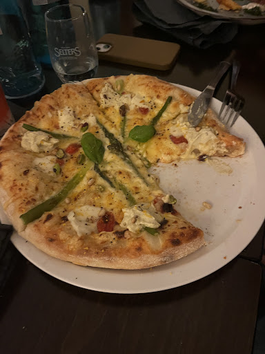 Als Apéritif hatten wir zwei erstklassig zubereitete Drinks. Zum Essen hatten wir einen sehr schönen Weisswein (Bacchus Fünf Freunde). Die Vorspeise war ein Carpaccio vom Rinderfilet mit Champignons und Parmesan, das sehr gut geschmeckt hat. Auch der Hauptgang war uneingeschränkt zu empfehlen (Beschwipstes Kalb bzw. eine Pizza) und es flossen fast Tränen, als der Teller leer war. Die Portionen waren allerdings so, dass eine Nachspeise für uns nicht mehr möglich war. Dafür gab's aber noch einen sehr guten Kaffee und ein frisch gezapftes Pils.