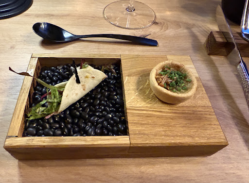 Das Menü im März überraschte nicht mit ausgefallenen Geschmacksvariationen. Die vertrauten Aromen überzeugten insbesondere durch die ästhetische und künstlerische Präsentation der Speisen. Handwerklich und geschmacklich war alles einwandfrei, aber leider erwiesen sich die Portionen als sehr klein, was den Gesamteindruck ein wenig trübte. Zudem bot die bewusst überschaulich gehaltene Speisekarte nur stark begrenzte Optionen für Vegetarier:innen und Veganer:innen. Gerichte sind als solches auch nicht gekennzeichnet. Ein spontanes Diner ist für diese Zielgruppe daher eher als ungeeignet zu bewerten.