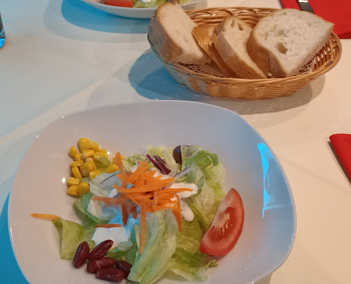 Vor dem Essen wurde Brot gereicht, welches leider eine gummiartige Konsistenz hatte und somit nicht frisch gebacken wurde. Der Beilagensalat wurde auch vorweg gereicht. Dieser war frisch, wurde allerdings nicht ausreichend geschleudert. Auf dem Salatteller war leider eine Wasserpfütze, die das doch leckere Dressing verwässert hat.