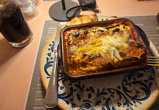 Die Lasagne fand ich sehr lecker (ein Stück Brot kommt dazu), und für diesen Preis kann man nicht meckern.