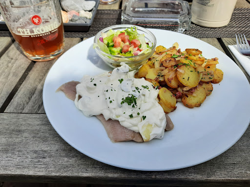 Read moreAn einem Donnerstagabend dort gewesen, ca 10 Gäste dort.Wir nahmen im oberen Teil Platz auf einer gemütlichen Bank. Dieser Teil ist über eine Stufe erreichbar. Der Herr der uns bediente blieb unten an der Stufe stehen und reichte uns die Karte. Die Karte war bei der nicht ausreichenden Beleuchtung nicht sehr gut zu lesen. Das Angebot an Speisen sehr übersichtlich u einfach.Leider keine Nudelgerichte u Vegetarisches mit Gemüse Fehlanzeige. Wir bestellren die Huhn 🐔 mit Salat u Kroketten, Sauce Currywurst mit Pommes u einen Salat als Vorspeise dieses würde auch extra erwähnt. Die Getränke kamen recht flott,wobei sie auf die nicht von uns belegten Plätze am Tisch gestellt werden,weil die Bedienung nicht richtig zu uns an den Tisch kommt sondern unten an der Treppe stehen bleibt u uns bedient.Wir mussten uns die Gläser dann selbst an den richtigen Platz stellen.Wir kamen uns sehr lieblos bedient vor!! Der Salat kam dann auch recht flott auch wieder von der unteren Stufe serviert. Wir aßen etwas Salat, leider kamen dann auch schon die Hauptgänge.Die Bedienung erfolgte wieder nicht richtig am Platz u man versicherte uns der Küche mitgeteilt zu haben des Die Salate Vorspeisen sein sollten. Die Currywurst war mit Sauce bedeckt u diese wiederum war mit Currypulver förmlich erstickt, das habe ich noch nie gesehen soviel Currypulver mindestens.zwei Esslöffel. Die Pommes waren aus der Tüte, schade. Was etwas unverschämt war das für Mayonnaise extra gezahlt werden sollte. Das Huhngericht war mit 13.50€ definitiv zu teuer. Die Sauce Hollandaise schien selbst gemacht. Nach ein paar Bissen von der Currywurst überwiegte leider das Currypulver, der Geschmack der Wurst nicht zu deuten vor Schärfe. Das Ambiente ist zwar gemütlich doch am Abend für Bestellungen viel zu dunkel. Dann fragten wir zweimal nach der Karte u bekamen die Rechnung. Eigentlich wollten wir ein Dessert bestellen haben es dann aber gelassen u gezahlt. Die Karten in Ringbuchformat nicht zeitgemäß was das Angebot betrifft, enttäuschend. Bedienung zwar soweit freundlich aber nur so lieblos u unlustig, an der Gästeanzahl kann es nicht gelegen haben da waren ja nicht so viele anwesend. Die Toiletten grausig,aber man muß hier betonen es wird wohl renoviert also das sollte dann wohl bald behoben sein. Preisleistung stimmt hier nicht, auch das Angebot ist schwach aufgestellt. Parkplätze sind vor dem Haus vorhanden.Leider für Menschen mit Behinderung nicht zu erreichen da der Eingang nur über Stufen zu erreichen ist.Die Bedienung nicht zufriedenstellend, ich honorieren auch dieses u finde es sehr schön, wenn man erkennt das diese mit Freude u Spaß die Gäste bewirten.Schade,wir hatten gehofft eine neue Location gefunden zu haben um Gutes zu essen.Aber das Angebot ist leider überhaupt nicht zeitgemäß, irgendwie in den 1990iger Jahren stehende lieben. Hier werden wir nicht...
