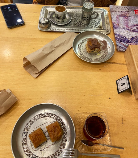 Read moreDie Süßspeisen schmecken sehr gut, egal ob Baklava, Şöbiyet oder Katmer, man wird nie enttäuscht. Doch leider lässt der Service sehr zu wünschen übrig. Wir wollten nach dem Abendessen einen Tee trinken und Baklava essen. Anscheinend waren wir zu spät dran. Zum Mitnehmen konnten wir uns noch was bestellen, vor Ort essen ging nicht. Besteck zum Mitnehmen gab es auch nicht.