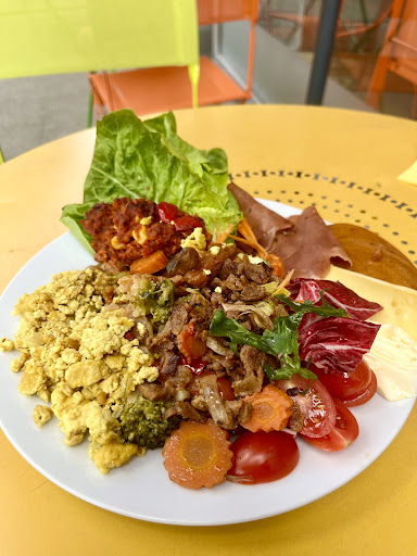 The Thai lady running this place is absolutely lovely and hilarious. We were pleasantly surprised to discover it was all you can eat when we arrived on Sunday (not sure if they do this every Sunday or not) so don’t judge the presentation, that was my greediness piling every option on top haha. Great food with so many options I think there was 6 options for mains and lots of cheese and mock meats with bread and chutneys for starters, fruit salad and even carrot cake included. Loads of smoothies, milk shakes available to buy and it’s ALL ORGANIC/BIO absolutely amazing 🤩. We were also very pleased to see lots of posters, information and leaflets for...