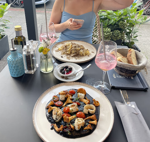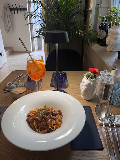 Read moreIch hätte vermutlich einfach die gut duftende Pizza unseres Nachbartisches bestellen sollen oder die Pasta meiner Freundin… Stattdessen habe ich mich für den Pulpo entschieden und wurde leider sehr enttäuscht. Für 26€ (!) erwarte ich eindeutig mehr. Der Kartoffelschaum war leider sehr wässrig & hatte keinen Geschmack (sah natürlich durch die Sepia Tinte aber toll aus). Meine Pfifferlinge waren leider noch etwas sandig und die größte Enttäuschung war der Pulpo selbst. Er war viel zu durchgebraten und hat daher nur nach Gummi geschmeckt. Von meinem Basilikum Gel (?) habe ich leider nichts auf meinem Teller gefunden. Bei solchen Preisen der Gerichte (wir haben beide jeweils 26€ für unsere Gerichte bezahlt) erwarte ich, dass mich zwischendurch jemand fragt, wie es schmeckt. Vom Service fehlte aber leider jede Spur! Dann hätte ich nämlich auch gerne das Essen zurückgegeben & etwas anderes bestellt. Wir haben allerdings eine ganze Weile warten müssen, damit überhaupt jemand raus kommt. Und das Restaurant war nicht unbedingt voll. Ich finde für das was das I Mori verkörpern möchte, nämlich schickes Ambiente, hochpreisige/hochwertige Gerichte muss auch ein dementsprechender Service geboten werden. Die Bedienung war zwar echt nett aber leider nicht wirklich aufmerksam. Ich denke, man kann sich auch auf Pizza & Pasta beschränken und glänzt eben damit. Auf meine Kritik wurde anfänglich auch eingegangen. Mir wurde ein Getränk oder Dessert angeboten. Am Ende stand mein bestellter Spritz aber auf der Rechnung 🙃
