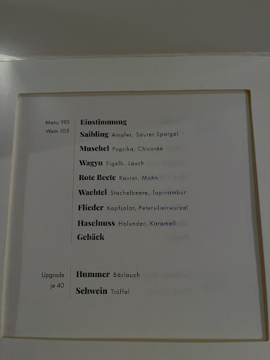 Read more[Update August 2025] Zumindest zu Essen, Wein, Service kann ich nur wieder betonen, was ich schon geschrieben habe. Sie sind weiter auf dem bisherigen Niveau, es gibt nichts zu bekritteln. Und bei jedem Besuch gibt es in Menü mindestens einen Gang, der besonders überraschend ist - den hervorzuheben aber den anderen Gängen Unrecht täte. Dieses Mal aber saß ich auf der Terrasse draußen - und das ist zusammen mit dem Menü und dem Wein an einem schönen Sommerabend noch einmal etwas Besonderes. [Update Januar 2025] Und es gibt immer noch keine Abstriche zu machen an den bisherigen Anmerkungen und Beurteilungen. Weitere Besuche bestätigten sie jedes Mal - wobei auf der anderen Seite auch keine Langeweile aufkam, da es immer wieder überraschende (und dabei sehr gelungene) Gänge gab, die das Gesamtmenü bereicherten und abrundeten.