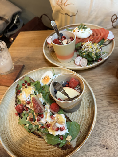 Read moreBoho-Vibes mit unfassbar leckerem Essen und überragendem Service. Wenn man auf das „Boho-Blogger-Chic-Ambiente“ steht und richtig leckeren Kaffee möchte, ist man hier genau richtig. Der Service ist wirklich toll. Da wir etwas auf unseren Tisch warten mussten, wurde uns als Entschädigung ein Kaffee auf‘s Haus angeboten. Wir wurden direkt wahrgenommen und haben uns auf Anhieb Wohlgefühlt.Alle Servicekräfte sind sehr zuvorkommend und aufmerksam. Wir haben nicht all zu lange auf unser Essen warten müssen, jedoch war alles sehr frisch und warm. Das Preisniveau ist gehoben, jedoch für die Portionen und ausgefallenen Zutaten gerechtfertigt. Wenn man es ruhiger haben möchte, gibt es im Hinterraum abseits Tische, wenn man eher für sich sein möchte. Auch auf barrierefreien Zugang wurde geachtet, mit dem Rollstuhl oder Kinderwagen hat man genug Platz. Alles in allem ein super tolles Café, man fühlte sich wie auf Bali...