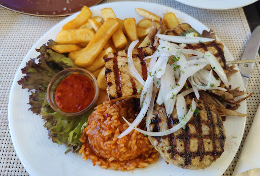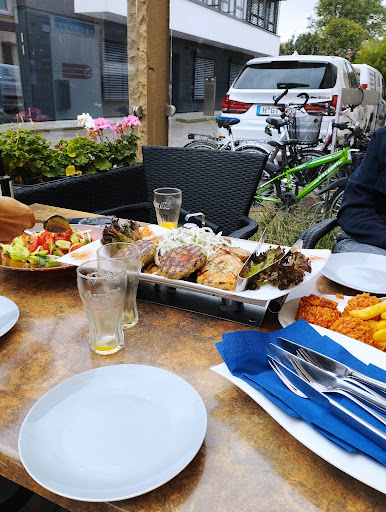 Read moreAchtung Fake-Bewertungen! Leider war es das schlechteste gastronomische Erlebnis der letzten Jahre. Zunächst alles okay: Parkplätze vorhanden, Ambiente passt, herzlicher Empfang. Dann kam das Essen. Das Gyros durchzogen von wabbeligem Fett und zähen Sehnen. Einfach nicht lang genug gegrillt, damit das Fett sich schön hatte auflösen und das Fleisch knusprig werden können. Noch schlimmer allerdings waren die Gambas. So etwas habe ich noch nie gesehen. Die äußere Schicht war schleimig und ließ sich mit der Gabel zerdrücken, darunter war es sehr zäh und noch roh. Alles angerichtet auf Gemüse und Dosenchampignons - der ganze Teller roch streng nach Fisch. Ich bin mir ziemlich sicher, dass das nicht nur unappetitlich, sondern auch gesundheitsgefährdend war. Nachdem ich das freundlich beanstandet hatte, wurde der Teller erstmal sehr freundlich zurück genommen. Es kam allerdings genau der gleiche Teller zurück - nur jetzt mit komplett strohig gegarten Garnelen, die aber immernoch zu eklig zum Essen waren. Nachdem ich wieder freundlich bemerkte, dass es am Produkt liegen müsse (vielleicht Kühlkette unterbrochen oder Gefrierbrand), wurde mir recht arrogant erklärt, die Garnelen würden tiefgekühlt kommen, dann aufgetaut werden und dann eben so werden. So funktioniere Gastronomie. Aha. Komisch, wie alle anderen Restaurants es dann besser hinkriegen können. Ich bin jedenfalls hungrig gegangen. Der Kommentar zum Gyros war, es könne gar nicht fettig sein, weil es Nackenfleisch sei und das habe ja kaum Fett. Das ist nun einfach Blödsinn und spricht nicht für die Fachkenntnisse des Inhabers. Die Rinderleber des dritten Gastes war sehr gut. Dafür kann man also hinfahren. Ansonsten würde ich definitiv einen anderen Griechen empfehlen. Die sind teils zwar schlechter bewertet, aber in...