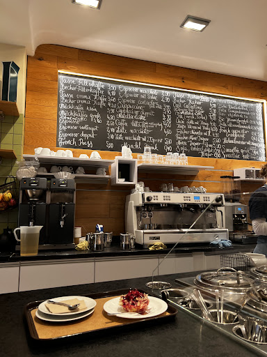 Read moreIch bin etwas hin- und hergerissen, wie ich dieses Café bewerten soll. Positiv waren die Auswahl der Speisen, zwar eher etwas höherpreisig sind aber handwerklich tolle Tortenauswahl und die herzhaften sind wirklich lecker. Habe bisher Cappuccino, Kuchen und Salat probiert, die Portionsgrößen waren gut. Und jetzt (leider) zu dem Negativen: Ich bin leider schon 2x an eine sehr unfreundliche Bedienung geraten. Das war eine Asiatin und da ich auch eine Asiatin bin, habe ich besonders freundlich gegrüßt und angelächelt, es kam einfach kein Lächeln, kein Hallo gar nichts zurück. Ich dachte mir: ok, vielleicht schlechte Laune gehabt? Und habe einfach nur meine Bestellung aufgegeben. Dann beim 2. Mal habe ich einen fertigen Caesars Salat (Preis war ausgeschrieben bei 15€) aus der Theke bestellt und dachte, damit ich ihr keine Umstände mache, nehme ich es so abgepackt mit, statt es dort zu essen. Sie hat mir dann einen höheren Preis genannt, da noch der Preis für die Verpackung (Pfand) drauf kam. Was ja an sich nicht schlimm war, weil ich es nicht wusste aber dann hab ich sie gefragt, ob ich vielleicht doch hier essen könnte. Sie hat mich verärgert angeguckt und mit der flachen Hand auf den Tresen gehauen und ich war so verdutzt, dass ich kaum einen Ton rausbekommen habe. Ich habe ihr einfach nur noch meinen 15€ Gutschein zum Bezahlen hingehalten. Sie hat dann sichtlich "not amused" meinen Salat auf den Teller geschüttet und mir den dann hingestellt. Ich konnte gar nicht wahrhaben, was da überhaupt...