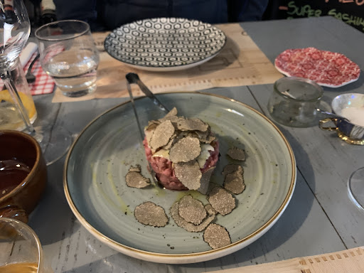 Amazing little place with outstanding italian wines, very friendly and professional service, and the most delicious dishes. I recommend you take the menu, as we did not and ended up ordering several dishes, which were all amazing. However, we did pay more than we would have paid if we had taken the menu. The ingredients are extremely fresh, and the combination of ingredients used in the dishes is simply perfect. The beef tartar was our absolute favorite, the original traditional vitello tonato, our second best. Next time, we shall try the tuna tartar. The coffee pudding with the sicilian chocolate ice cream was out of this world. Giorgio is always there when you need him and recommends exactly the type of wine you like which pairs with your food. The wine selection is unbelievable, and his prices are very fair. He's an outstanding and very professional host. We sat in the back in a charming little room surrounded by boxes of wine and candles. We had a delightful, unforgettable evening. Besser geht's nicht as they...