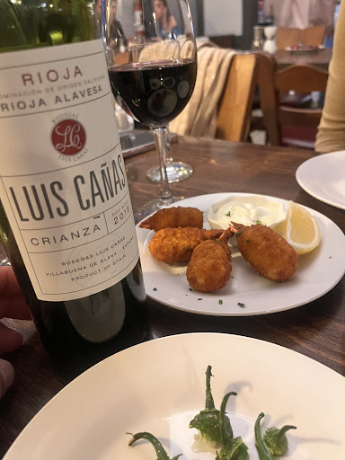 Read moreFür ein Kiezlokal, an das ich keine besonderen Ansprüche stelle, war es okay, aber mehr auch nicht. Schade, dass sich die spanisch-peruanische Speisekarte nicht auch in der Geschirrauswahl niederschlägt. Das weiße Geschirr passte nicht so recht auf die rustikalen Tische. Die Bedienung war sehr freundlich und um guten Service bemüht. Ich hätte mir allerdings gewünscht, dass sie bei unserer Weinauswahl darauf hingewiesen hätte, dass der Wein nicht für die Tapasauswahl geeignet ist. Der Wein wurde am Tisch geöffnet und eingeschenkt ohne das wir ihn hätten probieren können. Die Weingläser wurden auf Bierdeckel gestellt, was ich nicht schätze. Zum Essen: wir haben Tapas bestellt, die von der Kochqualität okay waren. Die Aioli war richtig gut, allerdings haben mir von den 5 Tapas 2 nicht wirklich geschmeckt, die Patatas schmeckten, als ob sie bereits am Vortag gekocht worden wären und bei den Gambas mit Knoblauch ließ die Soße zu...