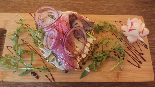 Es gibt eine Aussenterasse die halb überdacht ist. Geht man rein begrüßt einem ein einladendes Ambiente welches nicht zu überbordend wirkt. Die Speisekarte ist nicht überladen und hält für jeden was parat. Eine wechselnde saisonale Speisekarte gibt es auch. Alle Produkte kommen aus der Umgebung.