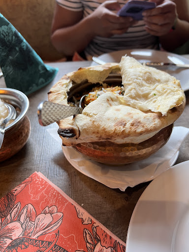 But Lassi was wow! Biryani came with some curry and Raita. The taste, smell and texture of Biryani was surprisingly good, although the veggies in it were different than what's traditionally added. The way they served it, in a curvy pot sealed with some bread was not a usual sight. The owner was young and chatty unlike most owners in other restaurants that I tried.