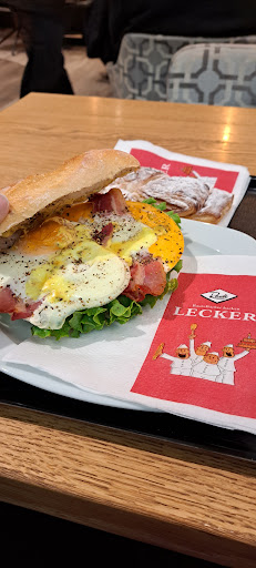 Read moreUm 8 Uhr war der Laden gut besucht. Die Auswahl der Belegten Brötchen war sehr umfangreich . Auch die Kuchentheke und Brötchen/Brot sahen lecker aus. Mein Latte Macchiato Caramel und meine weiße Schokolade waren lecker . Der Milchschaum cremig . Die Auswahl der Getränke fand ich super z.B weiße Schokolade mit Espresso. Das Ciabatta mit Spiegelei und Bacon war frisch und gut Belegt . Die Mazipanschnecke hätte für mich etwas mehr Marzipan haben dürfen 😉 war aber trotzdem lecker . Die Bedienung war sehr nett . Etwas irritiert war ich , das im Radio Antenne Bayern lief 😅