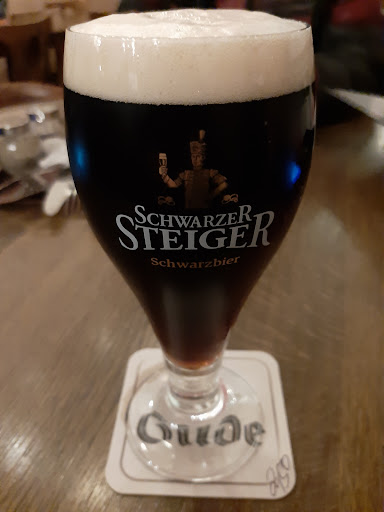 Warum dann nur vier Sterne? - Die sind einem kleinen Malheur zu verdanken: Bei der Anlieferung der ersten Runde mit vier Halblitergläsern Bier war die Bedienung so schwungvoll, dass die Lage komplett auf meinem Schoß landete und ich den Rest des Abends damit verbrachte, meine Hose...