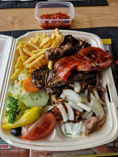 Read moreDas Essen war sehr lecker! Ich habe den Hausteller bestellt, um mal einen Überblick zu bekommen. Der Salat war frisch und knackig - das Dressing gut auf die einzelnen Gemüsesorten abgestimmt. Das Fleisch war zart und auf den Punkt. Der Reis war genau richtig und die Pommes waren genau, wie sie sein sollten. Der (für mich persönlich "leicht") Scharfe Dip ist so perfekt abgestimmt, dass er eine Symbiose aus Schärfe und Geschmack eingeht. Es ist nicht so scharf, dass man nichts mehr schmeckt und zugleich nicht so mild, dass man keine Schärfe schmeckt. Dieser hat das komplette Geschmackserlebnis dann noch mal zusätzlich verbessert.