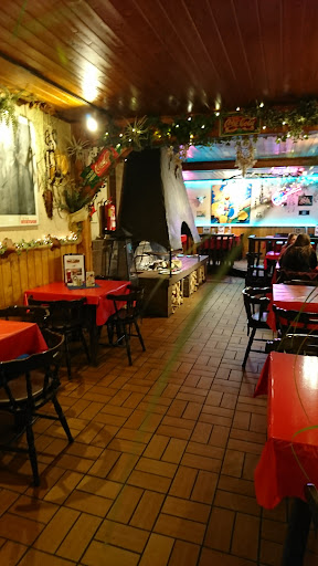 Waren zu dritt in dieser Lokalität an einem Samstagabend um 20h ohne zu reservieren. Der Laden war voll, das versprach ja schon mal Gutes. Wir mussten nur kurz warten und es wurde uns in dem angrenzenden Wintergarten? ein Platz angeboten. Beim Gang durch das Lokal wurden wir von der außergewöhnlichen Dekoration erschlagen. Natürlich Geschmackssache. Aber wenn man auch darauf Wert legt ist man hier falsch. Eigentlich hatten wir dann gerade ein Gefühl von Weihnachten. Die Decken, Fenster und Wände waren mit Lichterketten, diese teils noch mit Federn ausgestattet. Fensterrahmen und Bänke sind mit allerlei Schnickschnack bestückt,ein Mix aus ähnl.Weihnachtsdeko, Indianern, amerikanischer Traum Deko. An den Wänden hängen Mikey Mouse zwischen Indianern und anderen Zeugs, Wandtapeten, amerikanischer Landschaft und und und. Die roten und blauen Wachstuchtischdecken haben den Flair von Gartenhäuschenidylle. Oh, je! Die Bestuhlung könnte man auch aus vergangenen Jahren bezeichnen, leider auch etwas unbequem und sehr, sehr laut beim hin und her schieben auf den roten Backsteinfliesen. Das störte dermaßen. Das alles hat uns schon sehr abgeschreckt und wir haben uns sehr nicht sehr wohl gefühlt. Alles zu viel und zu überladen. Wie man das sauberhalten kann, ein Rätsel.