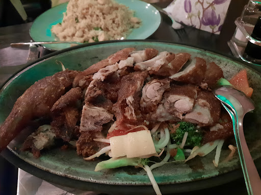 Read moreExcellent food, very pleasant and comfortable atmosphere with an authentic Chinese vibe. Friendly multilingual service (German, English and Russian that I personally know of). Also, quite reasonably priced meals. We had crispy duck with sweet and sour sauce (comes with a bowl of white (plain) rice, a platter of chicken rice with eggs and vegetables, as well as drinks for two for just under 45 €. I was impressed by the food being served on a hot plate to keep it warm longer. If you are in the vicinity of Lange Laube in Hannover, this place is definitely a must try. I...
