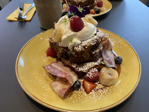 Now lets talk about my experience. I opted for Banana Bread French Toast with Bacon: Light and packed with flavor, and as you can see, an extremely generous portion. It looked like it tasted.