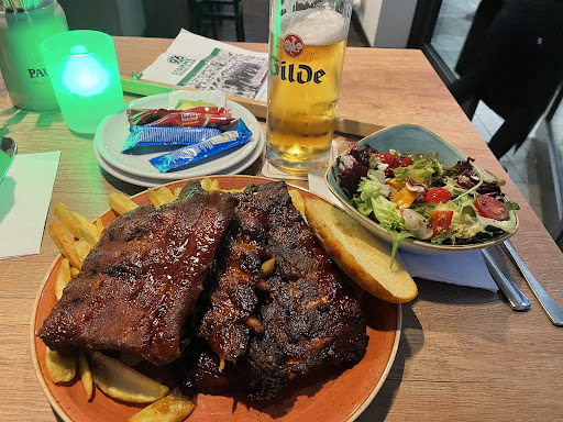 Sehr schönes Ambiente aber leider erfüllt das Angebot dieses Niveau nicht. Das Essen ist von der Qualität her sehr unterschiedlich. Es gibt gute Spareribs, die Burger hatten wir nicht aber sie sahen gut aus. Das Schnitzel war zäh und die Panade weich. Die Beilagensalate sind nicht schlecht. Dass eine Currywurst in der Fritteuse zubereitet wird (wurde vom Kellner bestätigt) ist eine kulinarische Bankrotterklärung. Das Geschirr ist schön und die Fotos von dem Essen, die von dem Betreibern hier eingestellt wurden, sehen gut aus. In der Realität ist es leider etwas liebloser. Die Bedienung war höflich aber wirkte nicht sonderlich professionell. Oft wurde Essen hin und her getragen, bis es einen Abnehmer gefunden hatte.