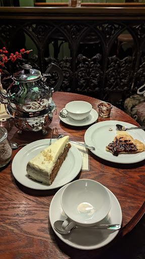 Beautiful place that takes you back in time, but in a good way! Unfortunately, most cities are slowly but surely losing their charme, with a Starbucks (or whatever other chain) on every corner - This is the exact opposite of that. A stunning little tea house in the middle of the old town on a beautiful square. Great tea and coffee, really enjoyed the cake and granola, too (the granola/yoghurt was definitely freshly made). Don’t be misguided but the name, this place is also more than suitable for coffee lovers - personally, I would recommend the filter coffee, as it’s flavorful and pleasant (I believe I had 3 large ones in one sitting). The atmosphere is also amazing - if you have the chance to visit during the fall time, count yourself as lucky. This is the perfect fall/coffee shop vibe and I will definitely be back again! Service ranged from ok-ish to amazing (the second waitress that came in was super nice and helpful, absolutely erased the experience with the first ok-ish waitress).