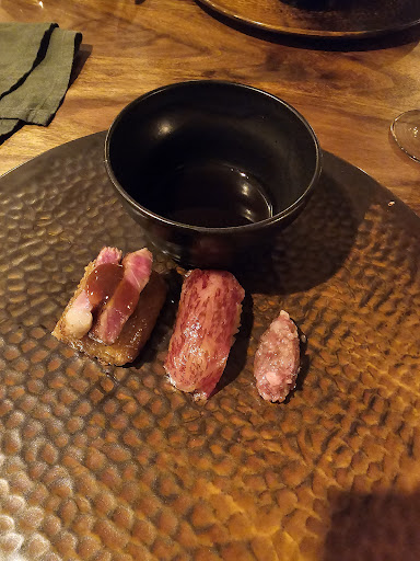 Read moreLeider war das Silvester-Menü (140 Euro pro Person) mehr als enttäuschend. Es gab 6 Gänge - dafür benötigte das Restaurant ca 5 Stunden. Die Begründung hierfür: 2 Köche seien krank und das wäre dann halt mal so. Generell war der Service recht unfreundlich und bei Kritik auf Nachfrage ("Das war nicht so unser Gang"), wurde man mit einer unschönen Aussage konfrontiert ("Es muss ja nicht jedem schmecken, mir schmeckt auch nicht alles"). Der Gruß aus der Küche (Kürbissuppe in Gebäck) und das Brot mit Butter waren absolut ok, danach ließ die Qualität von Gang zu Gang mehr nach. Zunächst gab es einen Pilzknödel, der leider absolut geschmacksneutral war (dafür war die Soße erstaunlich gut), danach gab es Hamachi, der Fisch war super, die "Soße" war aber so sauer, dass es den Fisch total überlagert hat. Dann ging es weiter mit der Ochsenschwanzsuppe - dies war nur Brühe ohne Einlage, aber durchaus lecker. Dazu gabe es einen Mini-Crepes, dieser war aber wieder absolut geschmacksneutral. Als weiteren Gang gab es Heilbutt, von der Garzeit und Konsistenz war dieser super, aber leider überhaupt nicht gesalzen und in fader Soße ertränkt. Dann ging es zu den beiden Hauptgängen: Ein kleiner Abschnitt labbrige Entenbrust neben einer lieblosen einzelnen Stange Spagel und einem Stück Sellerie. Dazu dünne Soße, welche aber durchaus schmeckte. Danach das Highlight des Menüs: Wagyu-Rind nach dreierlei Sushi-Art. Der Reis war leider alles andere als Sushi-Reis, ein fester Klumpen. Das Wagyu war einmal angebrannt und dann komplett geschmacksneutral, da es überhaupt nicht gesalzen war. Auch die Ponzu war alles andere als ein Geschmackserlebnis. Danach gab es eine Eis-Ente in einer Badewanne mit Schaum-Füllung - dieser Gang war sehr kreativ, optisch schön anzusehen und auch geschmacklich sehr gut. Das eigentliche Dessert war dann eine Mandarinen-Pistazien-Kuchen - nichts besonderes und geschmacklich auch eher fade. Zur Rechnung gab es dann noch einen Schoko-Keks, der konnte den Abend dann auch nicht mehr retten.
