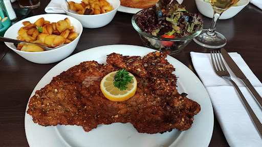 Read moreHeute einen Tisch reserviert gehabt. Etwas eher dort eingetroffen war aber kein Problem. Vorweg gab es einen Rinderkraftbrühe mit Frittaten. Soweit ich weiß klein geschnittener Pfannkuchen. Geschmack war spitze. Als Getränk hab ich natürlich ein Almdudler genommen. Wer es nicht kennt, es handelt sich dabei um eine Kräuterlimonade. Preislich liegt man hierfür bei 3,80 € für 0,33 l. Als Hauptgang wählte ich das Original Wiener Schnitzel vom Kalb für 17,90 €. Dazu gab es den Gurkensalat und Röstkartoffeln. Jeweils für 3,50 €. Essen kam in einer guten Zeit. Die Bedienung war sehr freundlich. War der Chef laut Beleg Roman. Die Musik im Hintergrund passt und man fühlt sich wirklich als wäre man eine Weile in Österreich. Nun das Wichtigste das Schnitzel. Sehr groß, aber natürlich sehr dünn so wie es sein soll. Toller Geschmack und auf Nachfrage erhielt ich auch Preiselbeeren kostenlos dazu. Gurkensalat war auch mal anders für mich, aber lecker. Den Abschluss bildete ein leckerer Cappuccino. Toilette war sauber und es gibt hier nicht Damen oder Herren, sondern Sissi oder Franzl. Es gibt auch einen kleinen Korb mit Deo und allerlei Artikeln. Freundlicher Chef, schmackhaftes Essen und passendes Ambiente. Preislich für alles lag man bei 70,00 €....