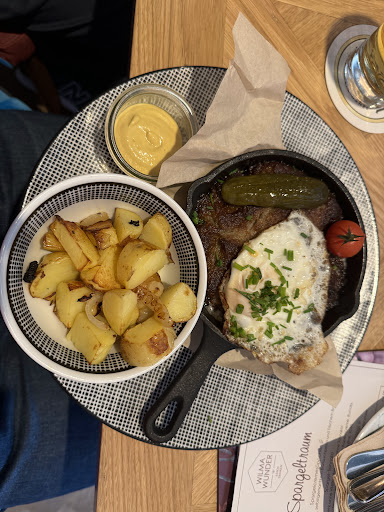 Read moreDas Ambiente/Deko ist wirklich toll ( der hintere Bereich ist allerdings nichts für geräuschempfindliche Menschen). Wir waren zu Viert und wollten lecker Essen und Trinken. Karte hat eine tolle Auswahl mit besonderen Gerichten, auf Sonderwünsche bei der Bestellung wurde eingegangen, deswegen 1 Stern für den Service. Cocktails waren Mega lecker!! Wir hätten echt gerne noch mehrere bestellt, aber es kam nicht einmal eine Bedienung während des Essens oder danach, um eine weitere Getränke Bestellungen aufzunehmen. Ich hatte dann nach dem Essen bei Klärung eines Problems einen weiteren Cocktail bestellt, der leider nie ankam. Meine Begleitungen hatten schon keine Lust mehr. Bei den beiden Schnitzeln waren die Pommes kalt und teilweise roh. Ich habe das gleich angemerkt und mir sollten Neue gebracht werden… nachdem ich mit dem Schnitzel fertig war, das war wirklich lecker, fragte ich dann irgendwann noch mal nach.. richtig entschuldigt wurde sich nicht, Aussagen wie „ Ich wusste das gar nicht“ und „ Ich habe es doch weitergegeben“ von der gleichen Bedienung waren doch sehr wunderlich. Irgendwann bekam ich dann eine Portion TrüffelPommes, die war auch okay. Ich merkte dann noch an, dass die Sauce Hollandaise kalt war. Die wird dort so serviert, aha. Gerne in Karte schreiben, ich vermute, die meisten Gäste erwarten ne warme Sauce. Meine Freunde merkten dann noch an, dass die Rinderwurst doch etwas zu fettig war. Da kam nur die Reaktion, dass das bei Rinderwurst eben so sei. Ja, die ist fettig, schwimmt aber nicht im Fett. Er würde es aber an die Küche weitergeben. Die Portion Rinderwurst mit Spiegelei und kleiner Schale Kartoffeln und Senf ist preislich wirklich übertrieben. Auch aufs Bezahlen mussten wir ewig warten und erneut darauf hinweisen. Wirklich, Service und Qualität ist...