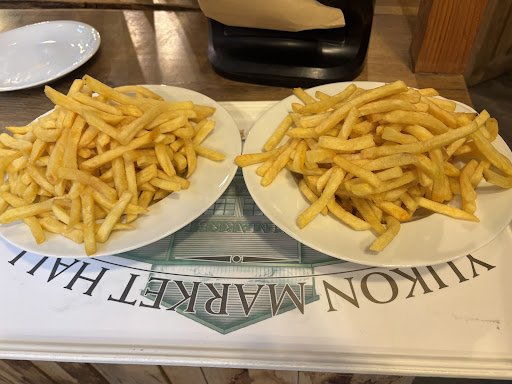 Read moreWir haben 5 x kleine Pommes gekauft, der Mitarbeiter hat die Pommes, die sich in dem silbernen Behälter befanden, einfach auf die Teller geklatscht sodass die Hälfte auf dem Tablett gelandet ist. Am Ende war für eine Schüssel keine Pommes mehr übrig, da hat er sich gedacht, nehme ich mir ein wenig von den anderen Tellern runter - wird ja nicht auffallen. Fair wäre es gewesen, wenn man für den Preis auch einfach frische Pommes frittiert hätte. Die Pommes waren noch von der letzten Bestellung über, die Menge war zu wenig und geschmeckt haben sie daher auch nicht gut . 0 Sterne