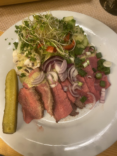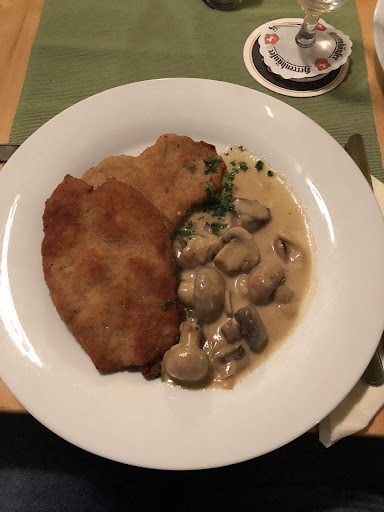 Das Essen war sehr, sehr lecker! Viel wert lege ich auf gute Bratkartoffeln und die hier kann ich ohne jede Bedenken empfehlen. 👏🏼 Die Bedienung war top aufmerksam, das Ambiente ist etwas in die Jahre gekommen, hat mich im Gesamtzusammenhang mit Schnitzel und Bratkartoffeln aber eine ungewollt faszinierende Zeitreise zurück in die 80er machen lassen, in der genau dieses Speisen, diese Art der nicht so überkandidelten und doch rührigen Bedienungen der rückwirkend betrachtet viel zu wenig geschätzte Standard waren.