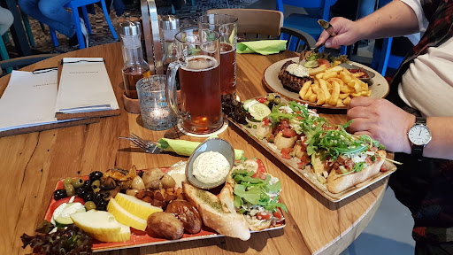 Read moreWir waren nun endlich auch einmal dort essen, da wir dem Campingplatz schon länger kennen. Das Ambiente ist super, wir haben an einem Freitagsbend einen Tisch reserviert, was auch nötig war, denn es war gut gefüllt. Was nicht jedem gefallen dürfte ist die Tatsache, dass man vom Service gedutzt wird. Diese Marotte findet sich aber in immer mehr Restaurants und Bistros nach amerikanischem Vorbild. Meine Frau fand es beispielsweise total unangebracht. Der Service war aber sehr nett und auch bemüht. Positiv ist zu benennen, dass man hier problemlos den Hund mitbringen kann. Das Essen war leider nur eine 3 von 10. Wir hatten den Weiderindburger und Tapas in Fleischvariationen. Ich habe diesen Burger schon in ähnlicher Form in unzähligen anderen Restaurants und Hotels in ganz Deutschland gegessen, aber dieser hatte trotz vorzüglicher Fleischqualität leider so gar keinen Geschmack oder Würze. Er schmeckte wie ein ungewürztes Widerind-Patty zwischen zwei Toastbrotscheiben. Weder Gurke, Salat, Tomate oder der Cheddar waren besondere Geschmacksträger. Das Brötchen sag super aus, schmeckte aber praktisch nach einer Scheibe Toast. Der Burger war zwar nicht klein, ich hatte abwr bei diesem Preisniveau meist noch deutlich größere Exemplare. Dafür gab es hier eine ordentliche Portion fritierte Kartoffelstücke. Der Burger war aber geschmacklich einfach viel zu fade und ohne jegliches Highlight. Die tolle Optik passte hier nicht zum Geschmackserlebnis, was sehr schade war. Vor allem der Bacon, den ich sonst immer als sehr krosses und salzig-würziges Extra auf dem Bürger sehr mag, hatte hier die Textur eines faden, rosa Kochschinkens. Lediglich das Ei ließ sich neben Fleich und Brötchen noch geschmacklich etwas differenzieren. Die Tapas meiner Frau zeigten das gleiche Bild. Das Fleisch hatte lediglich den Eigengeschnack und schmeckte im großen und ganzen eher ungewürzt. Lediglich die Hänchenstücke waren gut gewürzt. Gleiches galt für die getrockneten/gerösteten Tomaten. Das Öl war fast geschmacksneutral und hatte nur wenig von den tollen Gewürzen der mediteranen Küche. Das Ambiente, der Service und die Optik des Essens war toll, geschmacklich war es größtenteils leider...