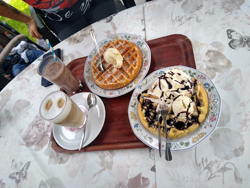 Das war nichts... Fangen wir vorne an... Impfstatus wurde kontrolliert, aber nicht mit dem Ausweis abgeglichen. Jedem Gast wurde gefühlt mitgeteilt, dass aktuell nur eine Auslastung von 70% zulässig sei, aber der Wintergarten als auch das Kaffee war gefühlt bis Anschlag voll... ich will aktuell nicht wissen was dirt 100% heißt. Wir waren mit unserer fünf jährigen Tochter dort. Bestellung wurde recht rasch aufgenommen, von 6 Kuchen/Torten waren 4 vergriffen, dann lange Zeit nichts. 41 Min. nach Einlass wurde unserer Tochter das bestellte Wasser gebracht. Genau nach 56 Min nach Einlass wurden unsere beiden Kaffee und zwei Waffeln gebracht, eine Waffel fehlte. Diese wurde wirklich sehr schnell nach gebracht, leider war es dann nicht die wie sie bestellt war. Von Tischhygiene keine Spur! Neue Gäste wurden direkt Tischen zugewiesen, die noch nicht einmal abgeräumt waren. Von Reinigung wollen wir an dieser Stelle nicht reden. Aber es gab nicht nur verbesserungswürdige Themen, kommen wir zu Positiven: Sanitärräume sauber und gepflegt Der Service war trotz Überlastung sehr freundlich Die Waffeln waren frisch, warm und lecker Die Rechnung war korrekt